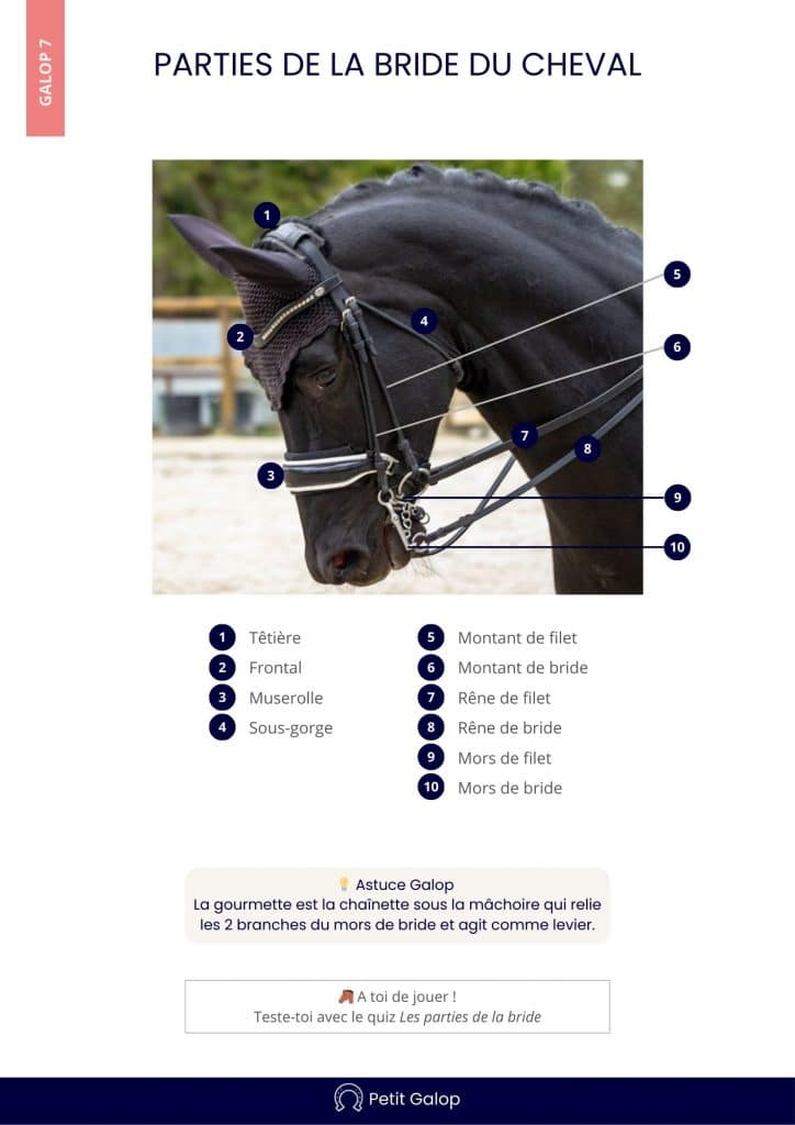 La bride fait partie des connaissances à apprendre pour le Galop 7.