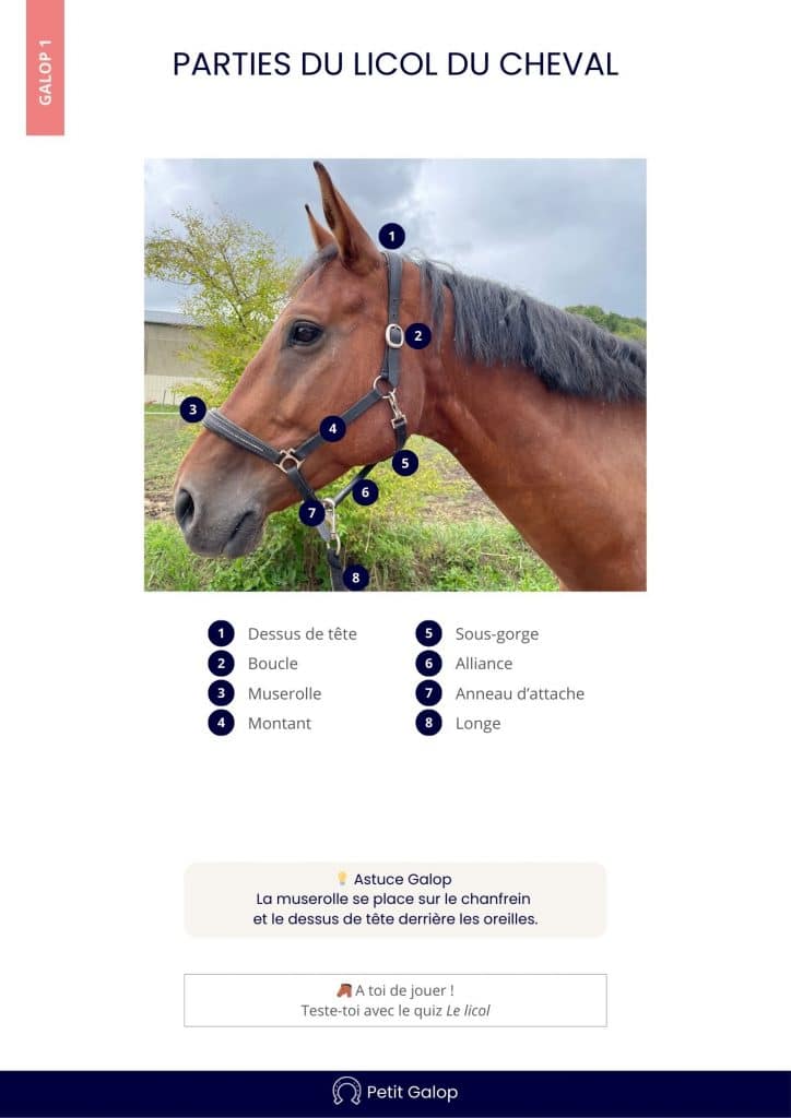 Voici les différentes parties du licol du cheval avec des fiches à télécharger. 😉
