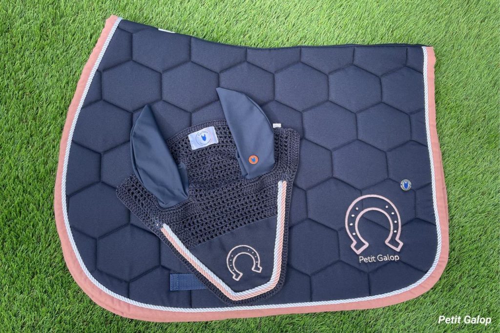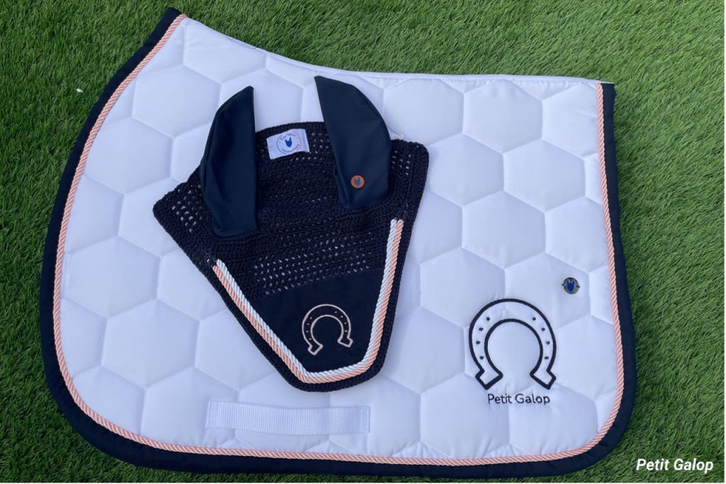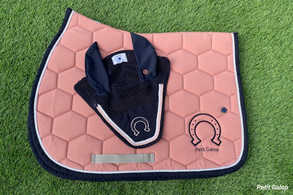 Voici le bonnet personnalisé aux couleurs de Petit Galop avec chacun des tapis de selle.